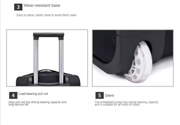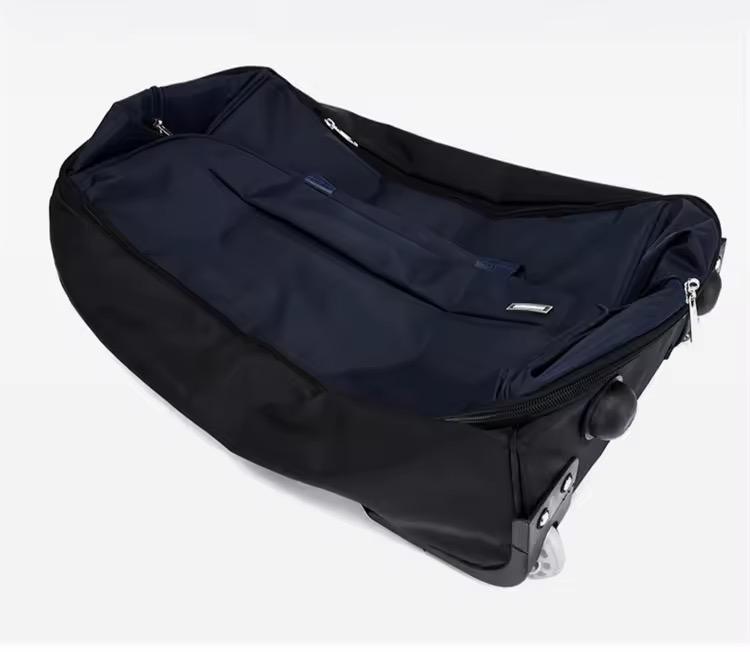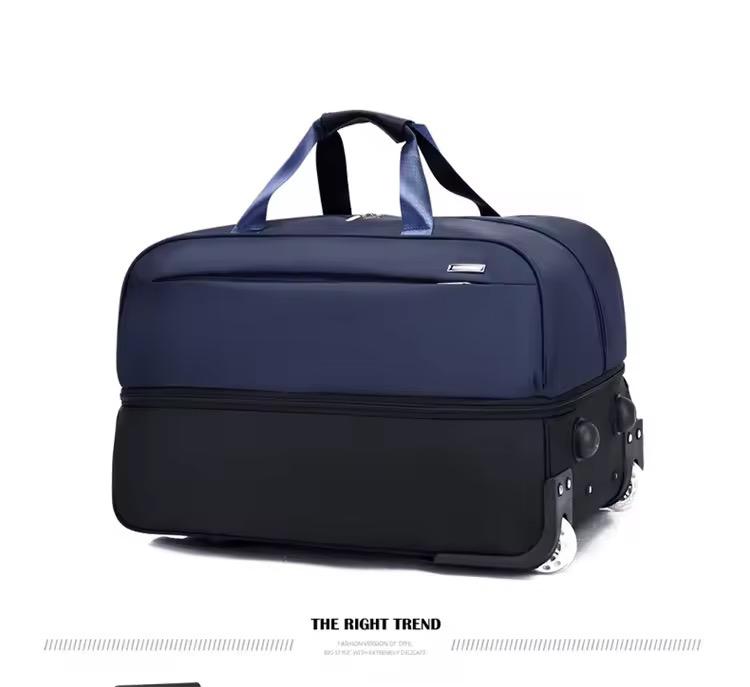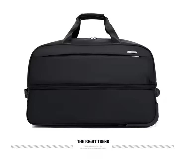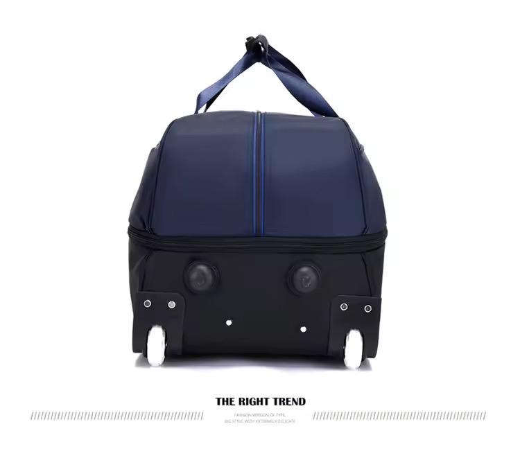 The Expandable rolling Duffel Bag is made of lightweight, waterproof and tear-resistant Oxford material, solid, anti-wrinkle, wear-resistant, waterproof, easy to scrub, durable and strong enough to wear.