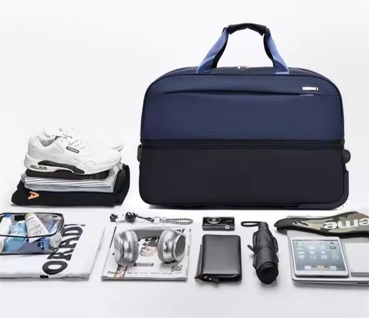 Stop struggling with bulky bags! Introducing the sleek and practical rolling duffel designed for travelers who value convenience, style and efficiency. Whether you are flying across the country or taking a weekend trip, this bag has you covered.